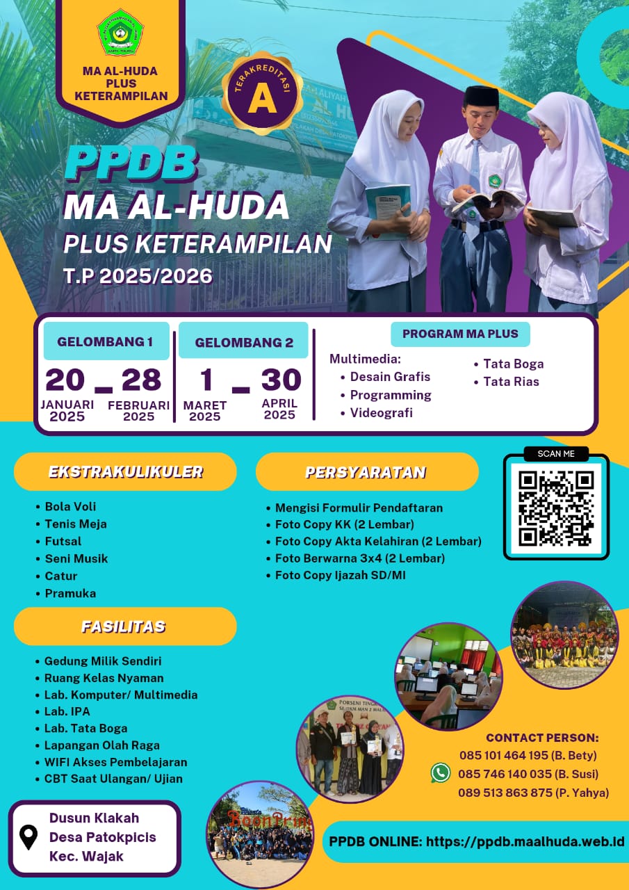PPDB (Penerimaan Peserta Didik Baru) Online merupakan sistem yang diciptakan untuk otomatisasi PPDB yang biasanya dilaksanakan secara manual. Dengan adanya sistem ini maka calon siswa yang akan mendaftar ke MAS AL HUDA Wajak ini diberi kemudahan untuk mendaftarkan diri.
